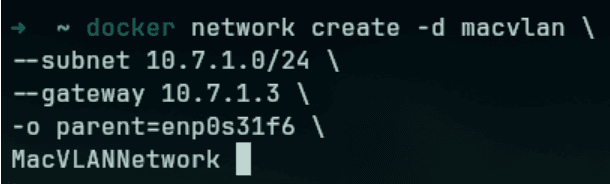 ➜ ~ docker network create -d macvlan \