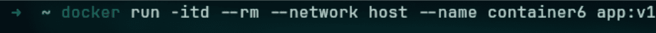 ➜ ~ docker run -itd --rm --network host --name container6 app:v1