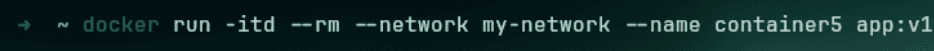 ➜ ~ docker run -itd --rm --network my-network --name container5 app:v1