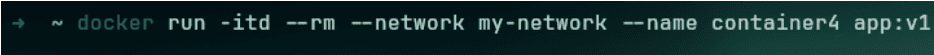 ➜ ~ docker run -itd --rm --network my-network --name container4 app:v1